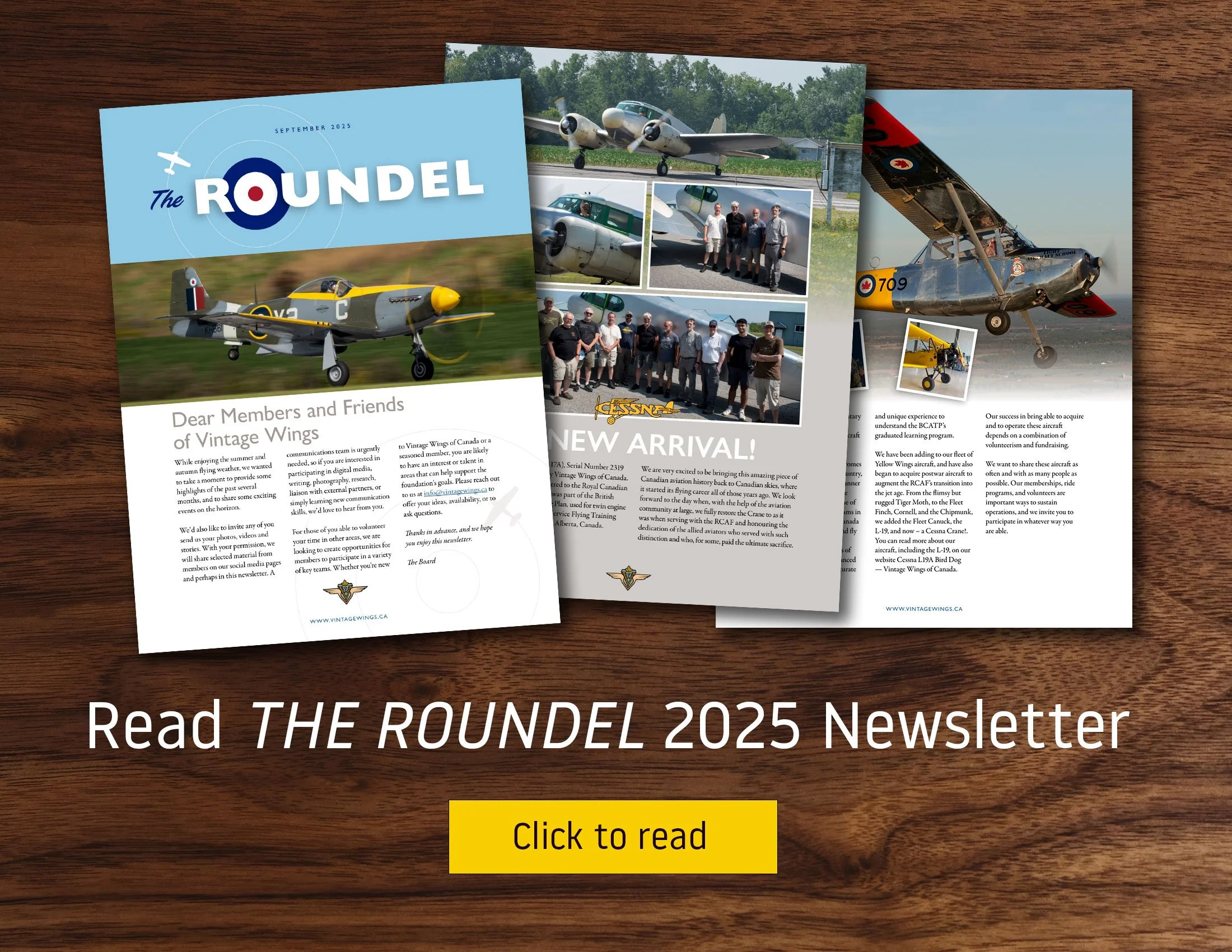 Vintage Wings of Canada is a not-for-profit, charitable organization with a collection of historically significant aircraft and is run entirely by volunteers. It is our mission to acquire, restore, maintain and fly classic aircraft significant to the early history of powered flight in Canada, focussing largely on the aircraft of the Second World War. We run education and flying programs with our own aircraft and in concert with the aircraft collection of our founder, Michael Potter. It is our goal to inspire and educate future generations about the historical significance of our aviation heritage and to demonstrate that these aircraft are more than just metal, fabric, and wood artifacts. We seek to keep the souls of these aircraft alive through the thundering sound of engines, the smell of leather, glycol, oil and sweat, as well as the laughter of their pilots as they dance with them in their natural element in the skies over Canada.