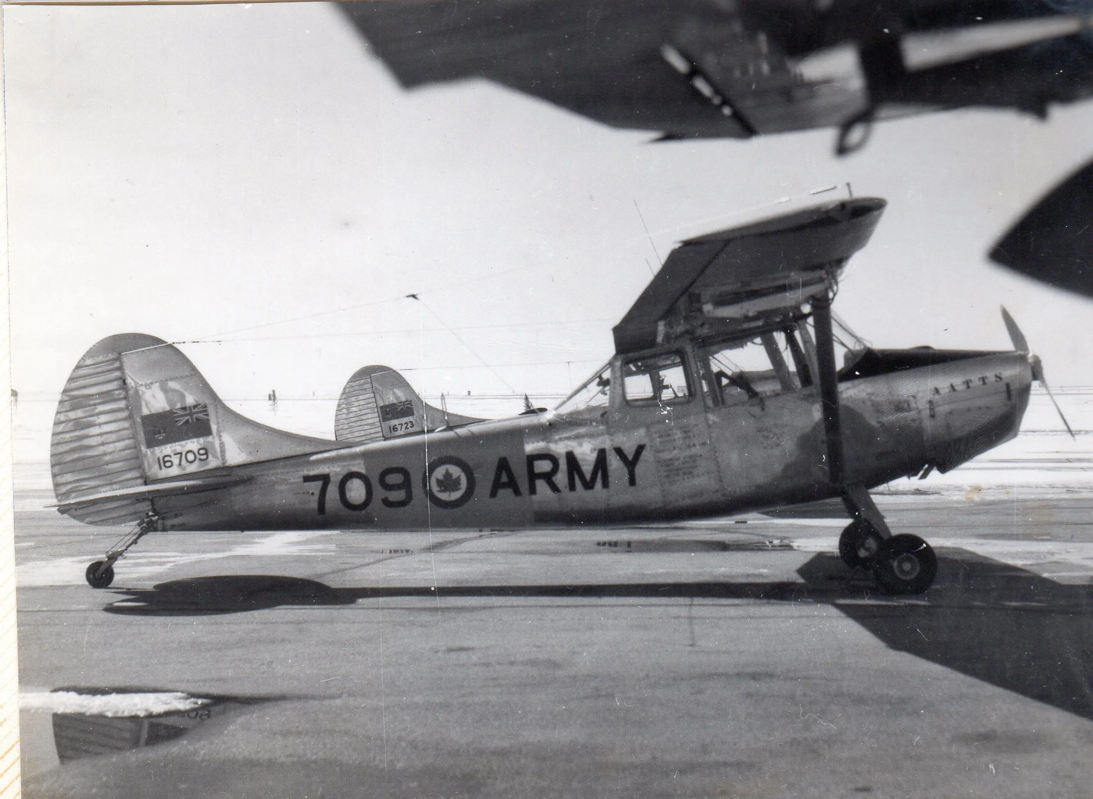 LCol John Dicker took this photo while he was attending his Light Aircraft Pilot Course at AATTS CJATC Jan-Apr 63. 709 was parked on the tarmac along with several other L-19s on strength CJATC at the time. The coloured band on the fuselage at that time was red as opposed to yellow. It changed over the years.