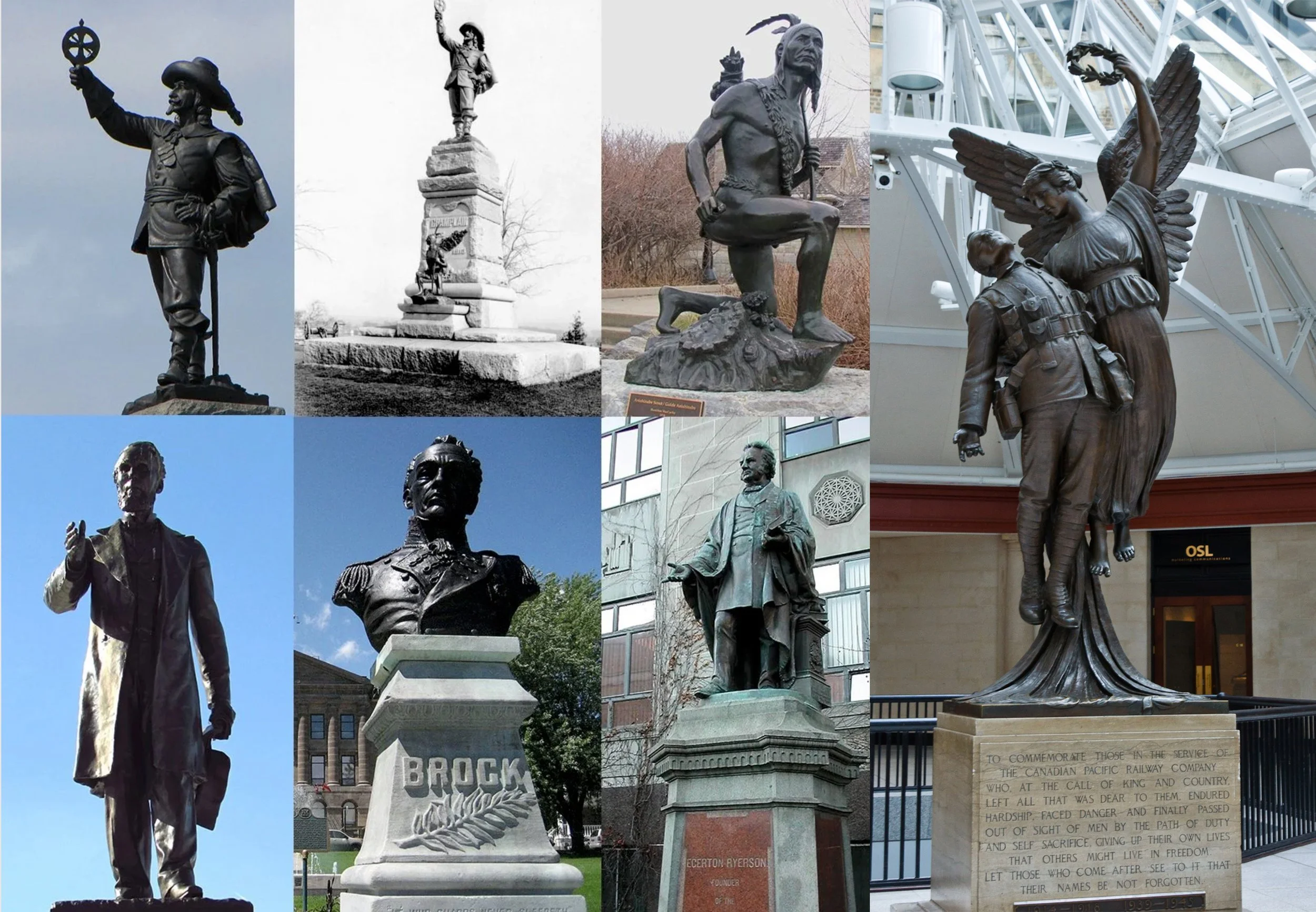 MacCarthy’s work can be seen from Victoria, British Columbia to Halifax Nova Scotia. Several of his works have been the subject of controversy in the past decade, suffering historical reset. His most famous work (top row) was the statue of Samuel de Champlain, the respected founder of New France. On the bottom row are three other bronze monuments by MacCarthy —Alexander MacKenzie, Canada’s second Prime Minister on Parliament Hill; a bust of General Sir Isaac Brock, hero of the War of 1812, in Brockville, the city named after him; and a monument to Eggerton Ryerson, the one of the creators of the Canada’s public school system which stood in Toronto for more than 100 years. While Ryerson was instrumental in building the public school system, he was also instrumental in creating the Indian residential school system which was one of Canada’s greatest shames. This statue was toppled in 2021 and decapitated. The head ended up on a pike at an Ontario reservation. At right is Coeur de Lion MacCarthy’s Canadian monument icon “Angel of Victory” at Montréal’s Windsor Station