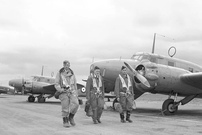 Today, it is largely a quiet place—just the lowing of cattle, the anxious shrill of the red-tailed hawk, the distant vulcanized hum of truck tires and guttural groan of engine brakes on Highway 2. But in the 1940s, the skies here thundered and clattered as yellow Harvards, Ansons and Airspeed Oxfords criss-crossed the vastness of the foothills. It was the time of the British Commonwealth Air Training Plan, and newly constructed training bases dotted the land where once only aboriginal hunters roamed—at Fort McLeod, High River, Vulcan, Lethbridge, Pearce, Claresholm and Medicine Hat. On sunny days, the skies were seamed with yellow aircraft flying off in every direction. Down low, exuberant young men hopped over wind breaks and farm houses in their Ansons, circling grain-elevators (with the names of towns on them) to get their bearings before thundering off to the next way point. Up high, formations of Ansons and Oxfords droned west and east like lumbering vees of giant geese.