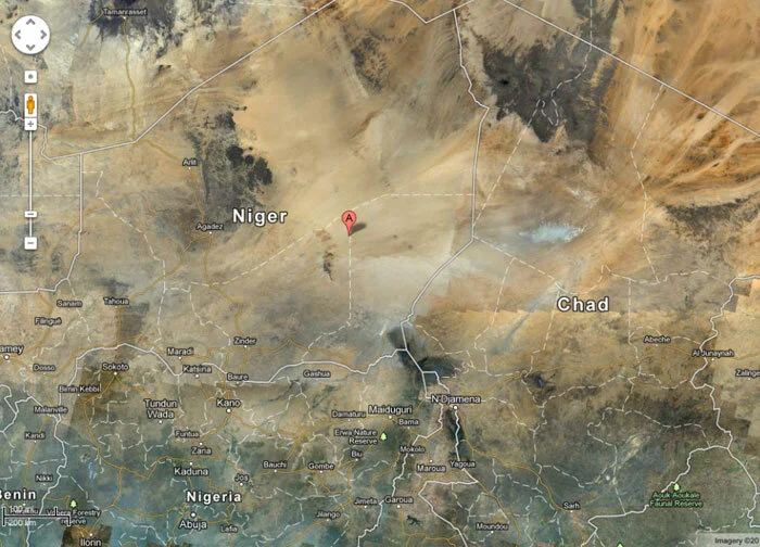 At around two o’clock in the afternoon of 19 September 1989, amidst the searing heat and blinding glare of the sun, the spinning, whistling, shattered and smoking remnants of a McDonnell Douglas DC-10 rained down on a spot in this desolate wilderness—engines, magazines, passenger seats, luggage, cargo, landing gear and the broken remains of 170 human beings—54 French, 48 Congolese, 25 Chadians, 9 Italians, 8 Americans, 5 Cameroonians, 4 Britons, 3 Zairians, 3 Canadians, 2 Central Africans, 2 Malians, 2 Swiss, 1 Algerian, 1 Belgian, 1 Bolivian, 1 Greek, 1 Moroccan and 1 Senegalese. It was a scene of almost unimaginable horror and heartbreak. Perhaps it was good that there were no humans at this spot to witness this horror, but then, perhaps it is the greatest sadness of all that there were no humans to bear witness to the loss of so many. The nearest community was the oasis hamlet of Fachi, some 150 kilometres to the northwest.