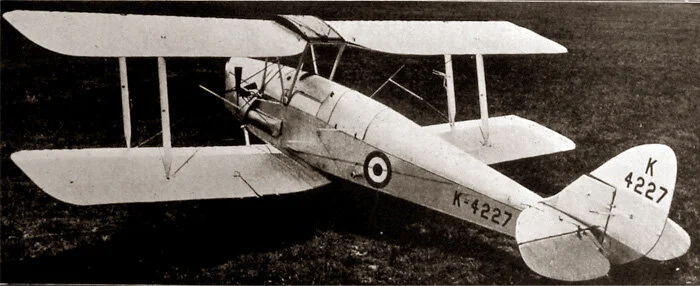 A photograph of an early example of a Queen Bee. This is quite possibly K4227, the early production Queen Bee featured in the previous two photos, but her serial numbers are hidden from the photographer. K4227 was very much in the public eye in June 1935 as she put on a flight demonstration at Farnborough, taking off, flying, manoeuvring and landing, all under remote control. The British Air Ministry did not allow pilotless aircraft to fly over populated areas, so test pilot Flight Lieutenant C.M. Vincent, DFC had to sit in the cockpit throughout the entire flying demonstration to guarantee control in the event of a loss of radio control. Researching the de Havilland Aircraft Production lists in the web, it is stated that K4227 crashed on 17 July 1935, just a couple of weeks after it was successfully displayed at the Farnborough Air Show. Photo via Gloucestershire Transport History
