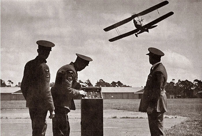 The Queen Bee represented a major step forward on many fronts, not the least of which was radio-control. One of its immediate, if disappointing, benefits was that it revealed shortfalls in the skills and efficacy of Royal Navy anti-aircraft gunners and systems. It was not uncommon for a Queen Bee to parade up and down in front of an entire warship squadron for over an hour while they pounded away at it, only to be commanded to land without a scratch. There is even an account of the King witnessing a demonstration of Royal Navy gunnery prowess using the Queen Bee, during which the gunners were unable to hit it. One high-ranking officer was seen to turn to his subordinate and whisper “For ***** sake, tell the operator to dial SPIN”, at which point the Queen Bee dove into the sea, seemingly the victim of the gunners. The Royal Navy, British Army and Royal Air Force would utilize the Queen Bee to great extent to improve gunnery results, but the Navy soon turned to new technologies such as radar range finding and primitive computers to make warship anti-aircraft weapons the equal of modern dive and torpedo bombers.