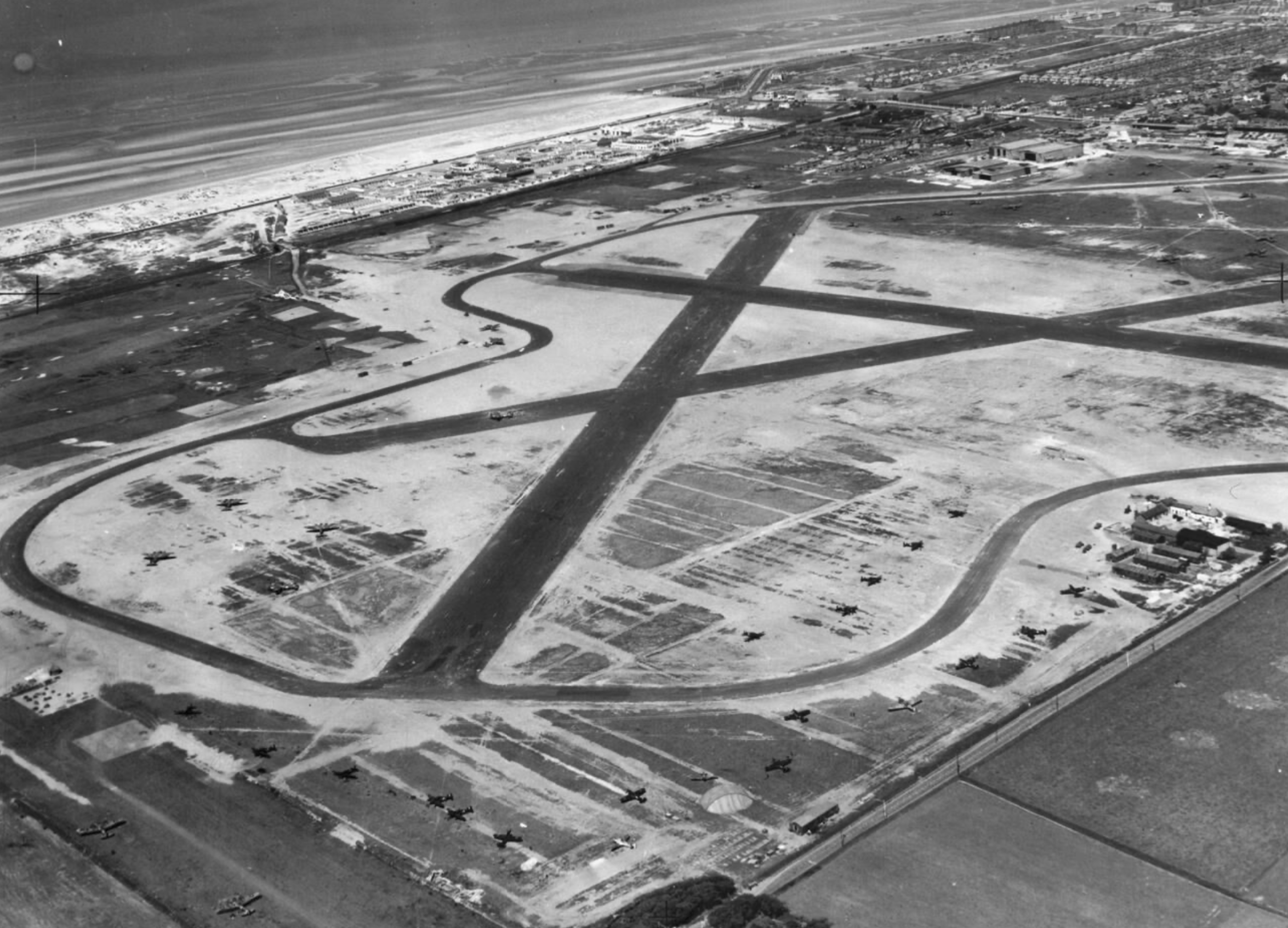 RAF Squires Gate, Blackpool with the Irish Sea in the background.