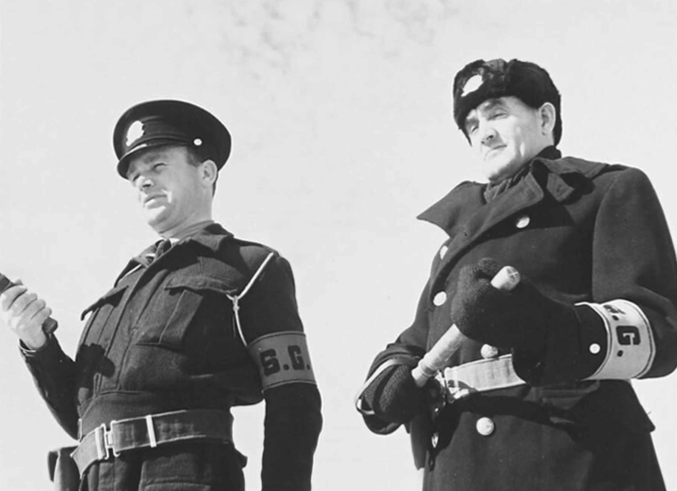 If Marian was caught, she would have to contend with the likes of no-nonsense Gander Station Guards John Squires of St. John’s, Newfoundland [left] and John Freemen of Trinity Bay. Photo: Imperial War Museum
