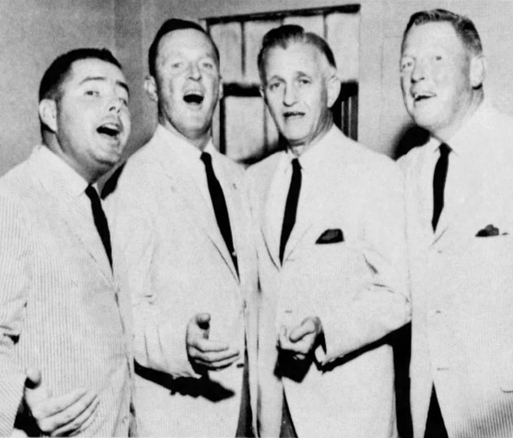 Tooker, second from right, was the baritone in the “Ocaladonians”, a barbershop quartet from Ocala, Florida. Image via Newspapers.com